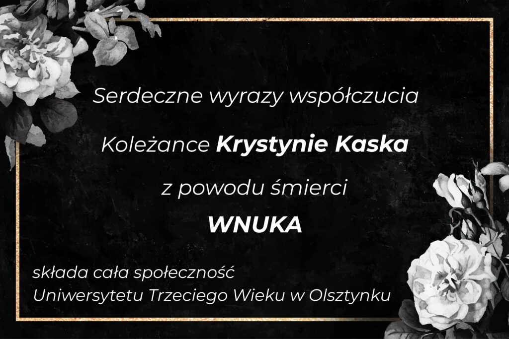 Koleżance Krystynie Kaska z powodu śmierci Wnuka składa cała społeczność Uniwersytetu Trzeciego Wieku