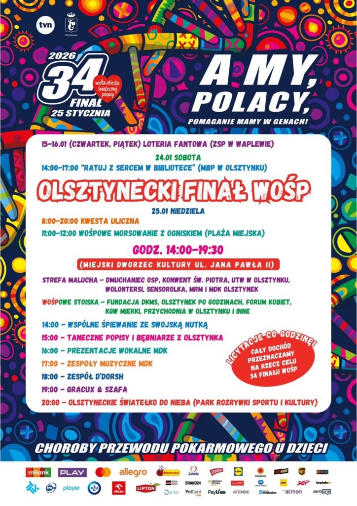 Cel 34. Finału WOŚP to: Diagnostyka i leczenie chorób przewodu pokarmowego u najmłodszych pacjentów.